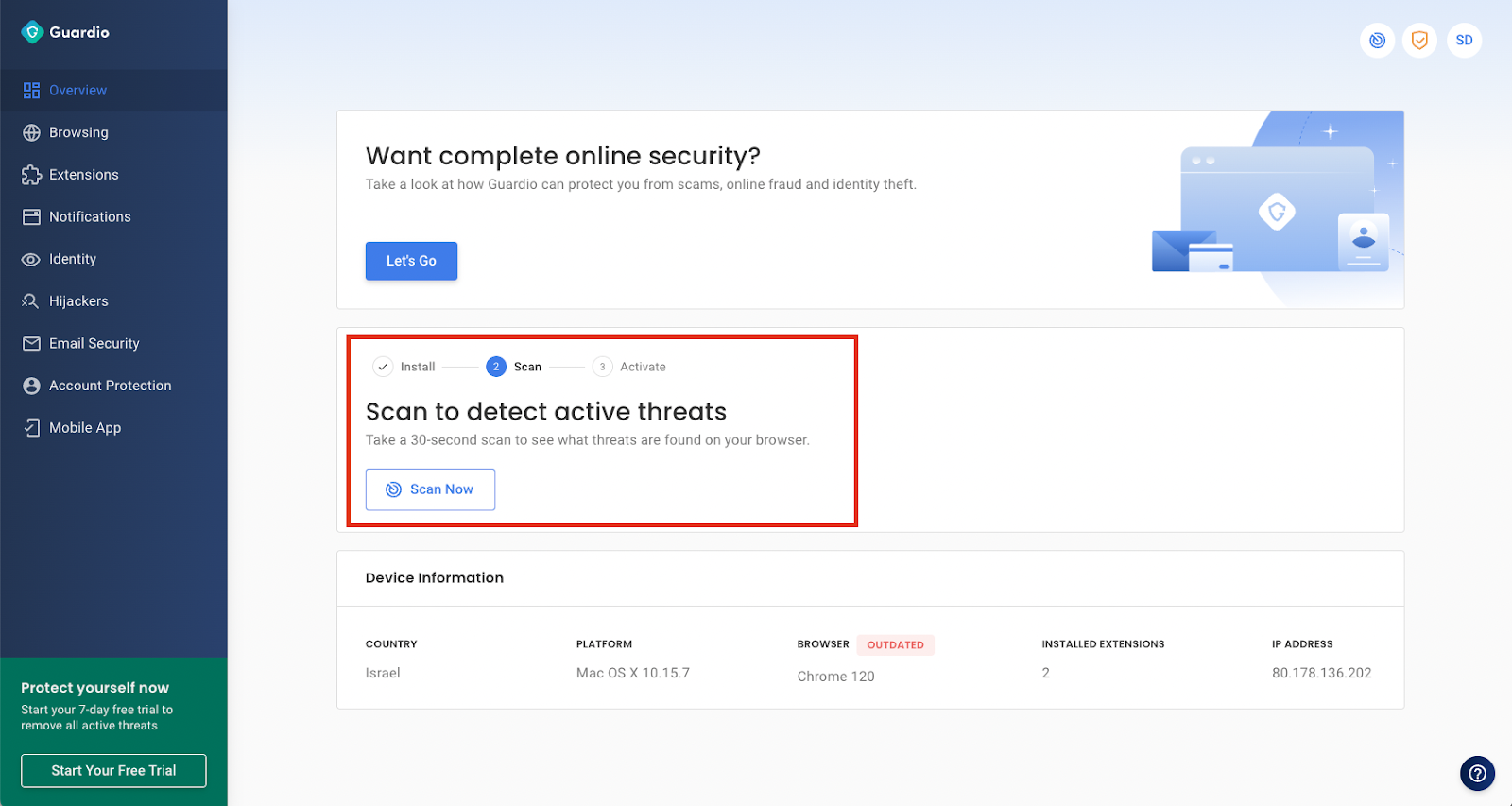 You can also check for data leaks by running a security scan on guard.io and clicking “Check Yourself Now”.